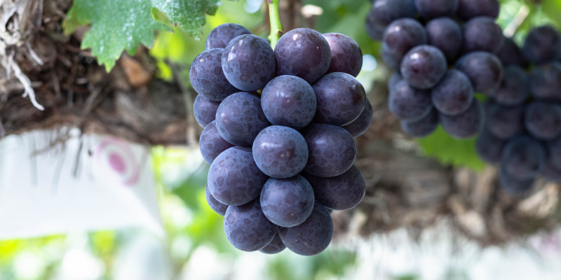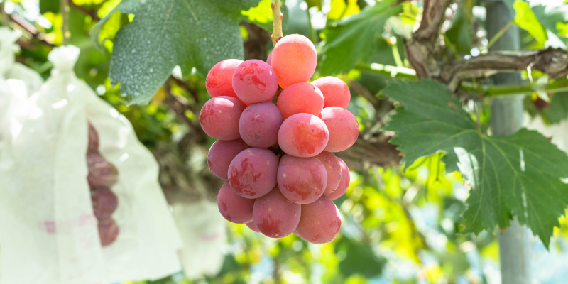 広島県の安芸津で生まれたぶどうです。鮮やかな紅色が美しく、甘味が強く酸味は控えめ、香りのよいぶどうです。
