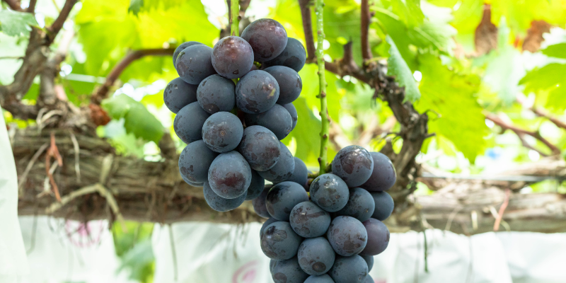 ピオーネを親に持つ黒系の大粒品種です。甘味と酸味のバランスがよく、果肉は柔らかくてジューシー。皮離れがよく食べやすいぶどうです。